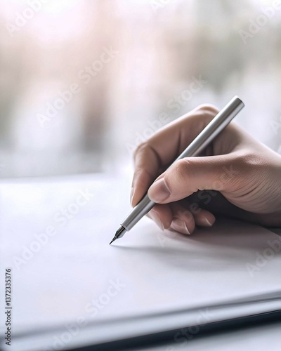 hand, pen, writing, paper, female, sunlight, window, calm, soft, minimal, light, fountain, grip, note, clean, document, sharpened, workspace, blank, study, relax, letter, indoor, planning, journal, daylight, stationery, creative, peace, note, routine, learning, home, task, elegance, handwriting, gesture, white, relaxed, intent
