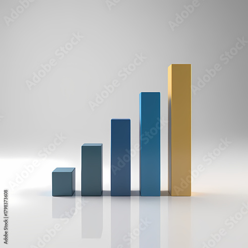 Minimalistic 3D bar chart with subtle reflections and a bright, uncluttered background