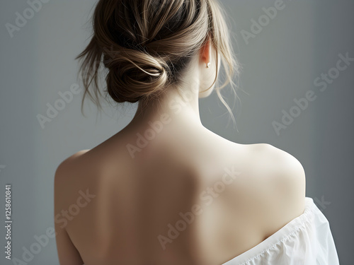 portrait, elegance, woman, beauty, back, minimal, coiffure, updo, feminine, fashion, chic, graceful, refined, delicate, style, serene, aesthetic, poise, glamour, natural, classic, contemporary, soft, model, polished, sophisticated, trendy, artistic, luxurious, timeless, silhouette, inspiration, alluring, subtile, sewing, youthful, romantic, charming, confidence, boutique, aethereal, minimalist, enchanting, dreamy, fresh, calm, sleek, modern
