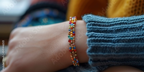 minimalistic beaded on cord bracelets on woman hand colorful