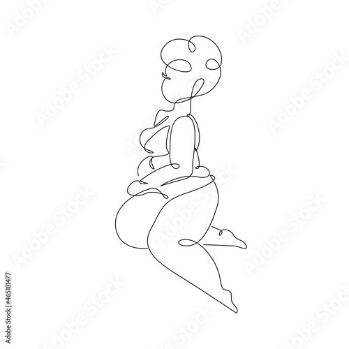 Minimalistic Female Figure One Line Drawing. Linear Woman Body. Female Body Modern Abstract Line Art Drawing. Vector Illustration.
