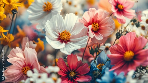 Minimalistic Floral Background with Colorful Spring Flowers for Banners and Wallpapers