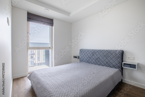 bedchamber, interior, minimalistic, window, bed, cosy, decor, lighting, natural light, design, clean, room, home, apartment, modern, inside, house, home interior, real estate, property, background, setting, contemporary, compact, simple, bright, relaxing, stylish, residential, furniture, roomy, quilt, headboard, neat, architecture, comfortable, tranquil, interior design, aesthetic, organised, functional, peaceful, serene, soft, open, glass window, floor