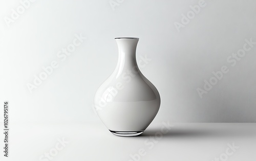 Minimalistic photograph of a cosmetic bottle with a glossy finish, placed on a pristine white background, highlighting the products simplicity and elegance