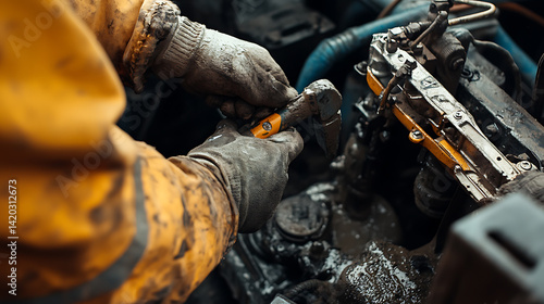 mining, technician, repairing, hydraulic, system, inside, lithium, excavation, vehicle, technical, skill, equipment, repair, industrial, maintenance, optical, wrench, hand