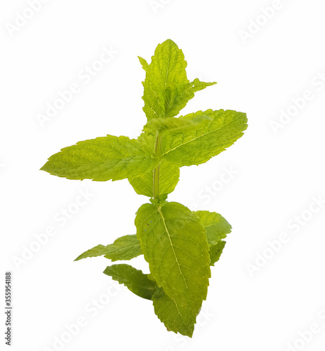 mint green fresh leaves on a branch isolated