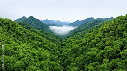 Misty Embrace of the Morning Fog in a Lush Green Forest Landscape