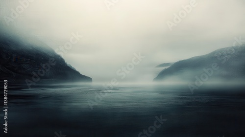 mist, foggy, landscape, waterway, mountain, travel, nature, scenic, water, sky, cloud, fog, moody, atmospheric, serene, calm, peaceful, quiet, tranquil, majestic, dramatic, mysterious, dark, gloomy, cold, winter, grey, blue, white, adventure, exploration, wilderness, remote, secluded, distant, horizon, view, panorama, background, image, photo, picture, photo