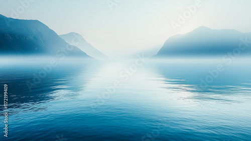 misty, mountain, lake, water, serene, calm, peaceful, tranquil, nature, landscape, scenic, beautiful, majestic, stillness, quiet, blue, hazy, atmospheric, moody, dreamy, aethereal, mystery, solitude, wilderness, untouched, pristine, exploration, adventure, travel, journey, escape, relaxation, meditation, calmness, serenity