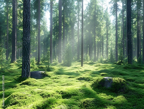 forest, sunlight, misty, nature, tree, green, moss, landscape, morning, scenic, tranquil, outdoors, timberland, dense, light, shadow, beauty, calm, peace, summer, fresh, ray, daybreak, lush, photo, image, photo, digital, wallpaper, desktop, explore, travel, adventure, hiking, wanderlust