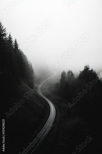 road, mountain, mist, fog, curve, winding, nature, scenic, travel, landscape, view, aerial, vale, path, tree, forest, dark, light, grey, black, white, greyscale, foggy, journey, tranquil, solitude, peace, beauty, misty, elevation, asphalt, wood, hike, adventure, calm, explore, mountainous, mystery