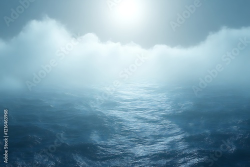ocean, sea, water, wave, fog, mist, sky, cloud, sun, light, blue, horizon, atmospheric, moody, dramatic, serene, calm, peaceful, tranquil, huge, endless, expanse, depth, mystery, enigma, aethereal, magical, dreamy, surreal, twilight, dawn, dusk, day, night, weather, nature, landscape, scenery, background, texture, pattern, abstract, digital, art, illustration