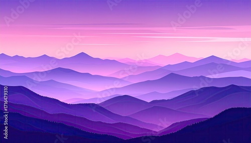 mountain, range, sunrise, mist, purple, pink, twilight, hazy, landscape, peak, vale, layer, horizon, cloud, serene, tranquil, calm, vista, scenic, elevation, distant, silhouette, vibrant, gradient, soft, atmospheric, dreamy, aethereal, majestic, nature, view, panorama, colourful, beauty, peaceful, inspiring, subtile, depth, perspective, light, colours, illustration, digital, art