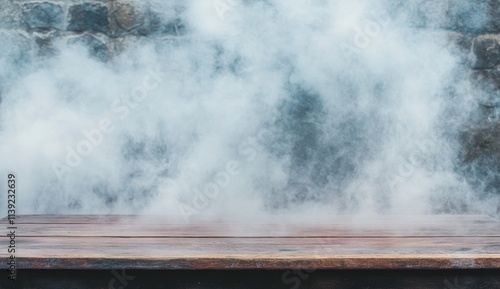 smoke, fog, mist, haze, vapour, steam, wood, table, surface, texture, background, wall, stone, rock, rustic, grunge, dark, moody, mysterious, ambient, atmosphere, environment, design, element, scene, setting, display, product, presentation, concept, abstract, grey, white, brown, shadow, vintage, old, aged, blank, empty, space, copy, low, light, photo, image, picture