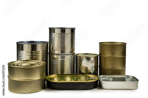 Mix of cans isolated on white background.