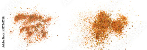 Mixed spices isolated on white background. Garlic fennel paprika carrots pepper basil celery, parsley, marjoram, onion