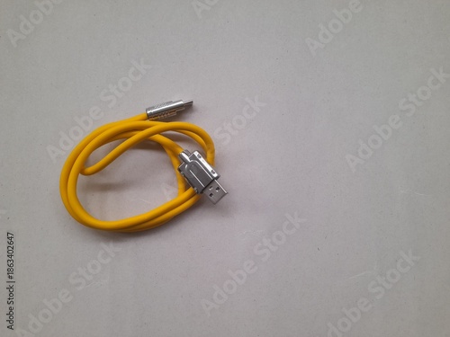 Mobile phone charging cable with gray background. smartphone background concept, phone, technology, battery, lifestyle, design, brand, shop, store, market, business, connection, product, electricity
