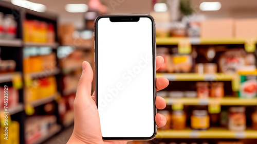 mobile, smartphone, screen, empty, advertisement, supermarket, blank, business, background, holding, hand, design, retail, contraption, shop, buy, phone, store, grocery, department, hypermarket, technology, sale, app, application, people, cyberspace, supply, shelving, monitor, online, display, product, copy space, mobile phone, using, shelf, commercial, factory, cafes, digital, smart, finger, phone, blur, female, lifestyle