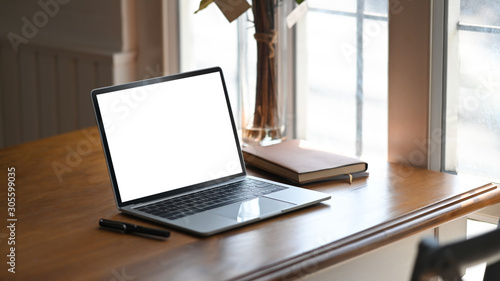 background, blank, business, chair, communication, computer, creative, creativity, design, desk, desktop, digital, display, empty, interior, cyberspace, isolated, keyboard, laptop, modern, monitor, notebook, office, pen, screen, half face, space, table, technology, vase, white, wood, wooden, work, workplace, workspace