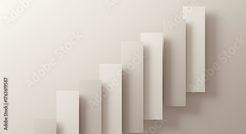 abstract, minimalist, modern, geometric, illustration, background, template, copy space, clean, simple, elegant, beige, cream, off-white, monochromatic, bar chart, graph, diagram, statistic, datum, progress, growth, ascending, rising, upward, development, success, achievement, improvement, trend, increase, positive, business, finance, economy, marketing, strategy, goal, future, concept, symbolic, rectangle, block, shape, shadow, light
