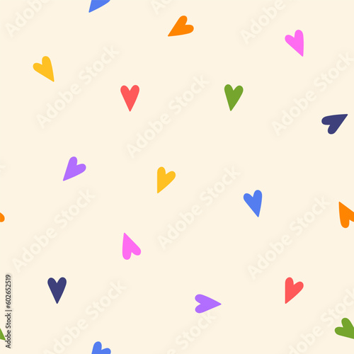 Modern abstract seamless pattern with colorful heart shapes. Romantic hand drawn vector design illustration background for surface design