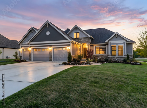 house, home, architecture, real estate, business, residential, building, new, exterior, estate, garden, suburban, property, garage, residence, family, construction, yard, sunset, dusk, lawn, sky, real, luxury, elegant, sale