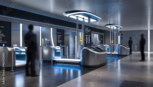 modern airport terminal with sleek design, bright lighting, and a futuristic appearance