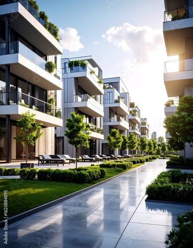 modern, architecture, urban, design, landscaping, exterior, residential, building, city, property, contemporary, luxury, home, living, stylish, roomy, green, paseo, patio, balcony, tree, sunlight, sunny