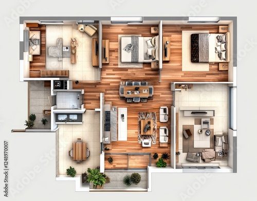 Modern Apartment Layout with Open Spaces and Elegant Design