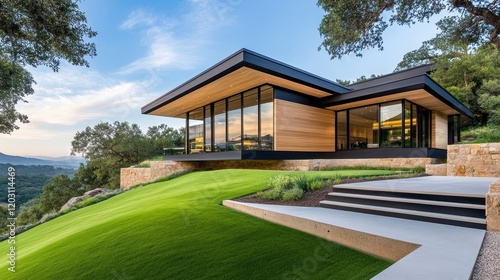 architecture, building, home, modern, design, exterior, landscape, nature, luxury, contemporary, residential, hillside, environment, sunset, glasses, structure, serene, grass, tree, property, driveway, patio, roof, window, peaceful, scenic, elegance, rural, gradient, daylight, sustainable, interior, craftsmanship, open space, minimalist, artistic, inviting, warm, balancing, style, aesthetic, harmony, geometric, landscaping