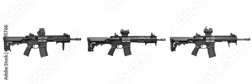 Modern Assault Rifle with Tactical Scope and Foregrip Isolated on White Background