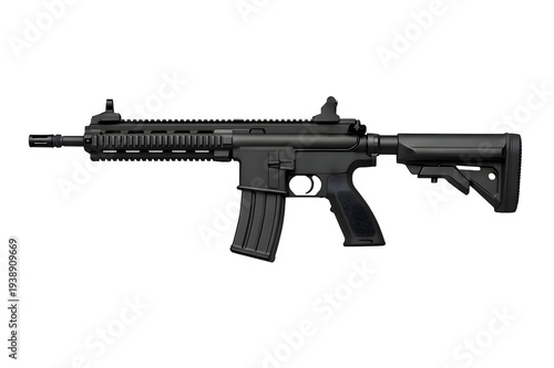 rifle, assault rifle, modern, tactical, firearm, gun, weapon, isolated, white background, cut-out, clipping path, realistic, polymer, furniture, metal, material, generic, centered, composition, professional, hi-res, commercial, catalog, technical, documentation, editorial, reference, design, defense, security