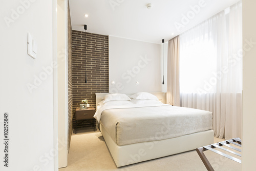 apartment, architecture, bed, bedchamber, sunlight, brick, brown, comfort, comfortable, condominium, contemporary, cushion, decor, design, double, elegance, elegant, morning, flat, floor, furnishing, furniture, habitation, headboard, holiday, home, hotel, house, indoor, interior, lamp, light, living, luxury, mattress, modern, new, relaxation, residence, resort, rest, room, simply, sleep, style, travel, vacation, wall, white