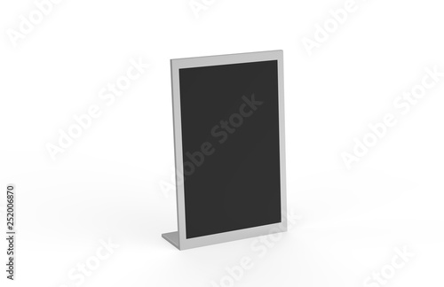 Modern Black Acrylic Tabletop, Wet Erase Liquid Chalk Board, Menu Display Write-On Board, Mock Up Template On Isolated White Background, 3D Illustration