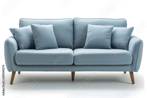 Modern Blue Sofa with Wooden Legs isolated on white background