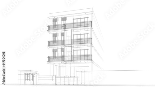 Modern building architectural sketch 3d rendering