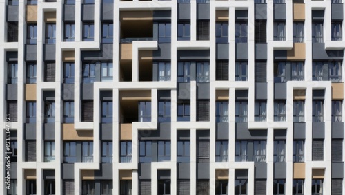 building, facades, apartment, block, exterior, pattern, repeating, geometric, stacked, aligned, urban, city, residential, street, downtown, white, beige, concrete, glasses, shadow, texture, orderly, modernist, daytime, neutral, no, people, architecture, structure, repetition, balcony, module, grid, symmetry, modernism, minimalism, urbanism, construction, design