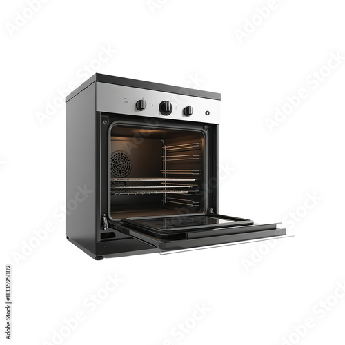 Modern Built-in Electric Oven with Open Door, Stainless Steel and Black Finish