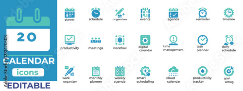 Modern calendar vector icons for planners, schedules, and productivity. Clean, editable, and perfect for digital or print use.eps