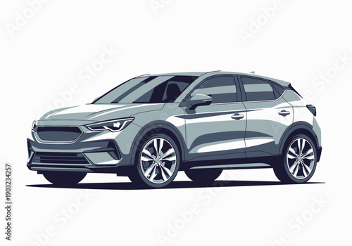 Modern car illustration viewed from the side showcasing sleek design and silver finish in a graphic representation