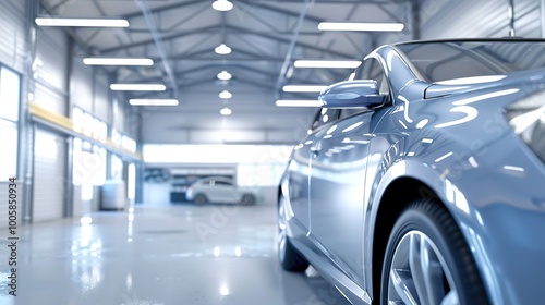 Modern car parked in spacious garage, ready for trade-in, showcasing clean and well-maintained interior.