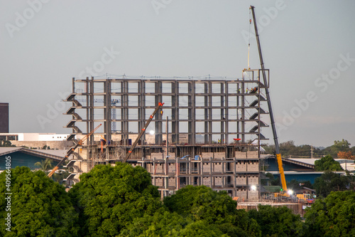 Modern city building (steel framework) under construction in Asian urban area - Angeles City, Pampanga, Philippines