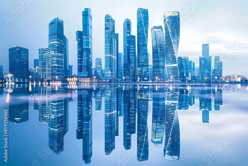 Modern city skyline with skyscrappers and reflection created with Generative AI