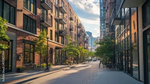 Modern City Street with Brick Buildings