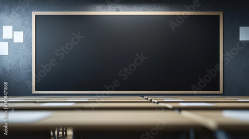 Modern Classroom Setup with Clean Blackboard and Simple Desks in a Digital Learning Environment