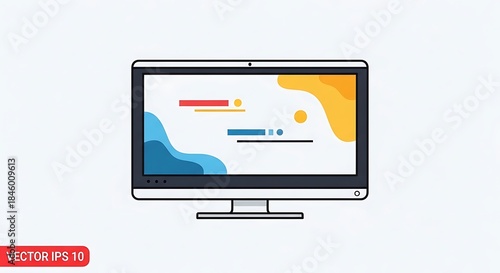monitor, computer, screen, display, desktop, technology, digital, device, electronic, hardware, office, workplace, graphic, design, abstract, wallpaper, colourful, modern, fluid, shape, blue, orange, yellow, illustration, vector, flat, icon, symbol, webcam, racked, bezel, interface, content, media, cyberspace, communication, datum, information, visual, art