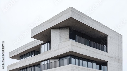 Modern Concrete Architecture with Clean Lines and Large Windows Against a Gray Sky