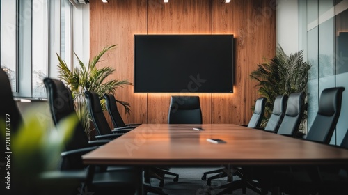 meeting, room, office, interior, design, modern, conference, chair, table, wood, screen, luxurious, corporate, business, workspace, elegant, professional, stylish, contemporary, clean, minimalist, plant, decor, architecture, building, space, technology, display, furniture, environment, setting, workplace, panel, wall, window, view, lighting, dark, light