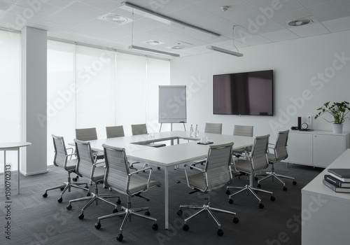 Modern Conference Room Interior with White Table and Chairs Photo