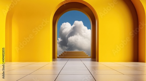 Modern design with bold yellow tones and light clouds emerging from central tunnel